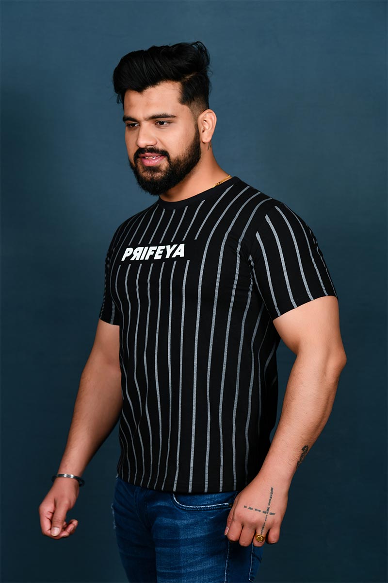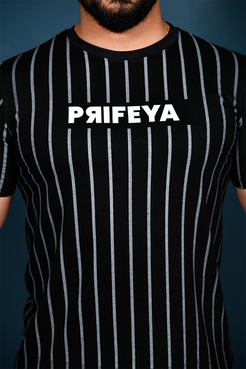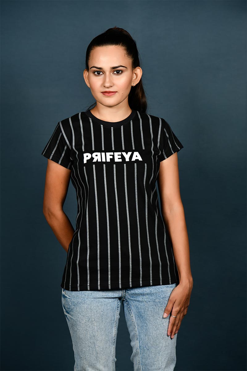 Prifeya Couple Black Crew Neck Brand Print T-Shirt. This Round Neck shirt is made of cotton. Mix that snugs your body and gives you an incredible measured and molded shirt. It is an optimal wear for all seasons and all events. We all adoration colors that go with the character we convey. We trust something similar. Style the manner in which you like, these tones will spice up the clothing.