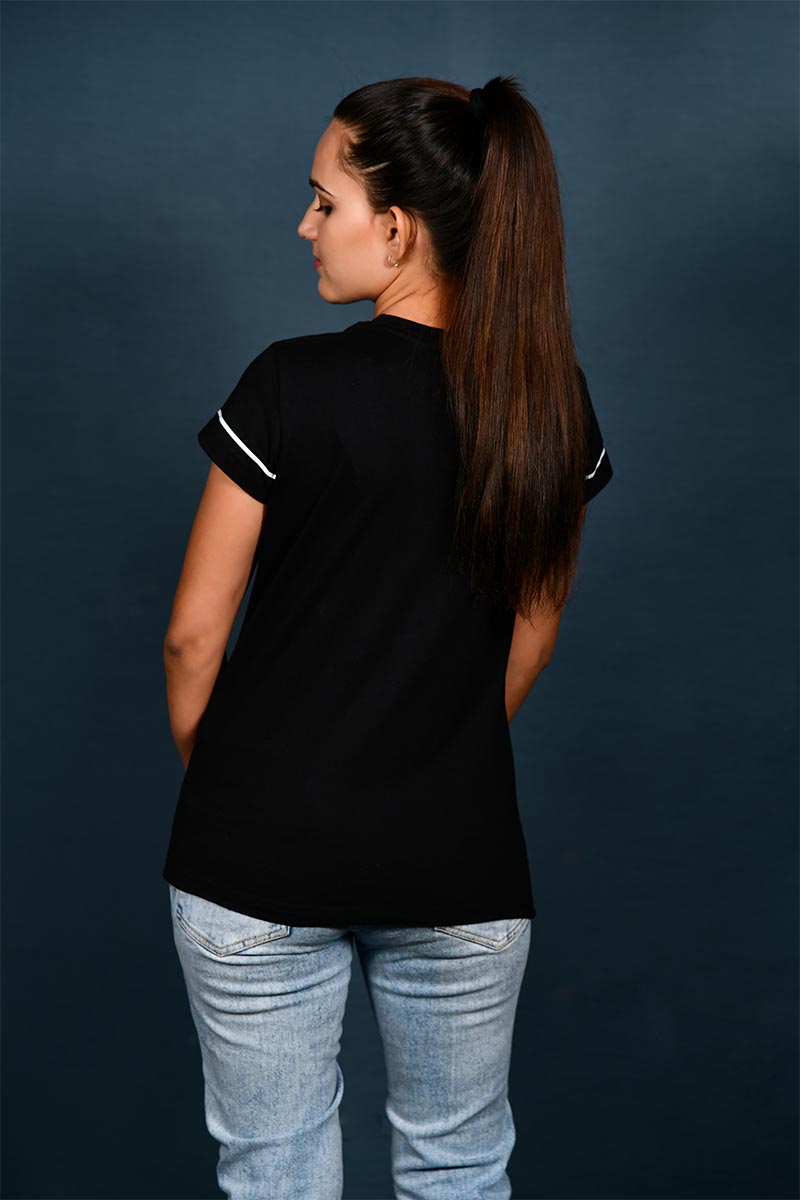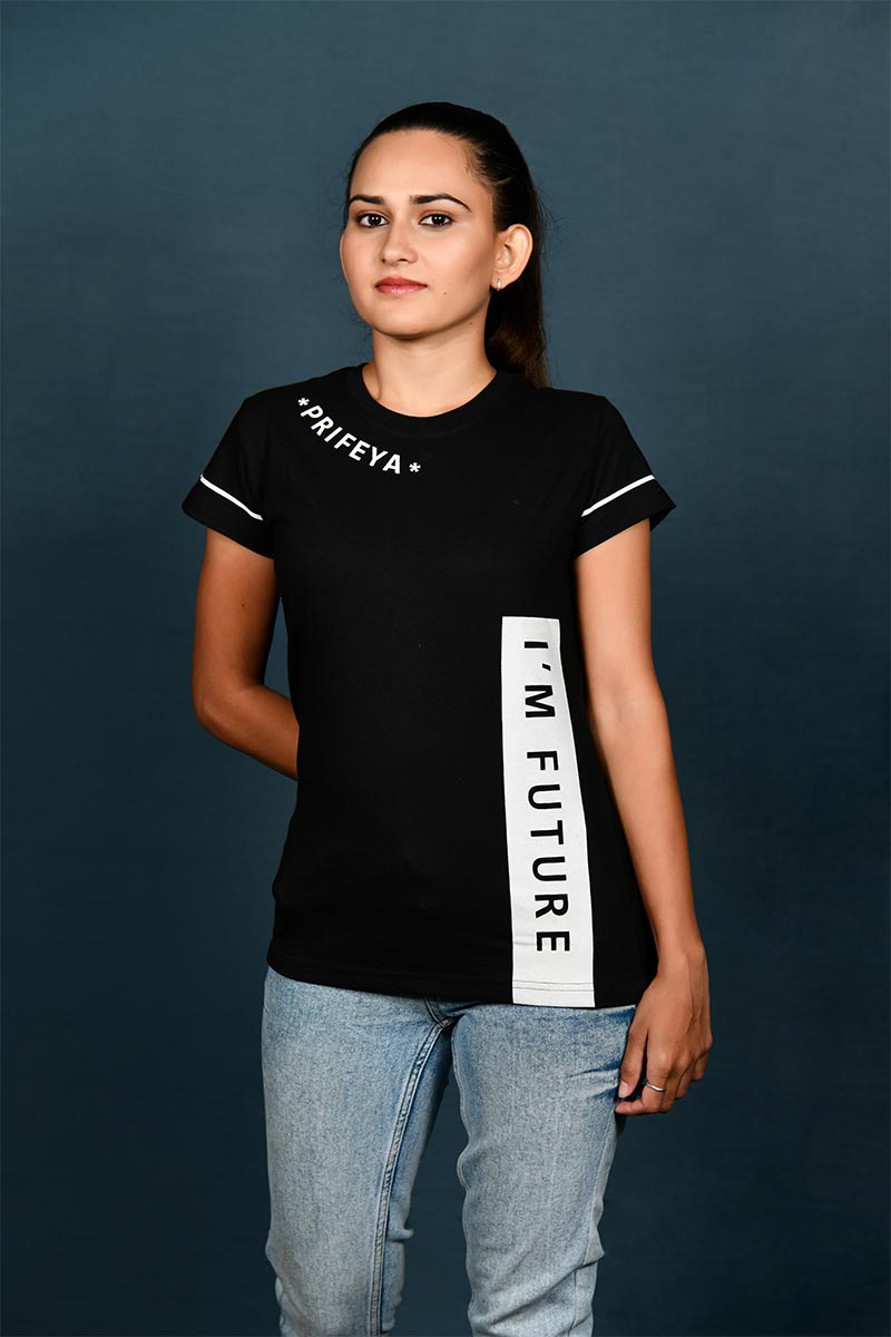 Prifeya Couple Black Crew Neck Future Print T-Shirt. This Round Neck shirt is made of cotton Lycra. Mix that snugs your body and gives you an incredible measured and molded shirt. It is an optimal wear for all seasons and all events. We all adoration colors that go with the character we convey. We trust something similar. Style the manner in which you like, these tones will spice up the clothing.