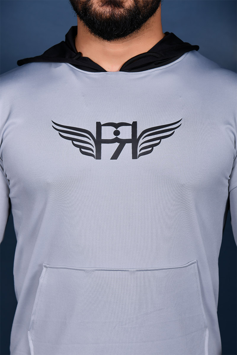 Men Gray Hoodie Track Top
