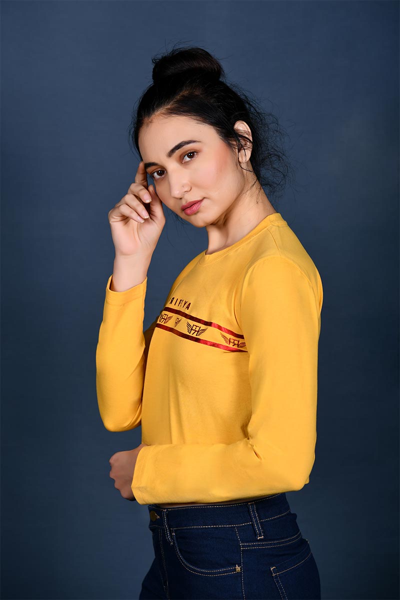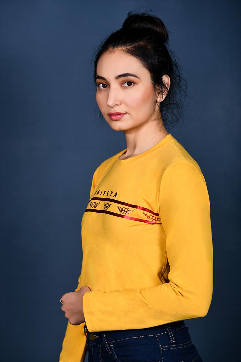 Be the first to review “Women Mustard Brand Print Crop Top T-Shirt”