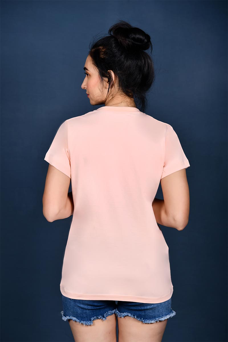 Women Peach Crew Neck Losangeles Print T-shirt Flaunt your chic look with this peach t-shirt from Tailored in regular fit, this cotton fabric t-shirt is light in weight. Featuring a round neck, short sleeves and graphic print, this t-shirt holds an elegant enchantment. Team this t-shirt with a pair of denims and heels for a stylish look.