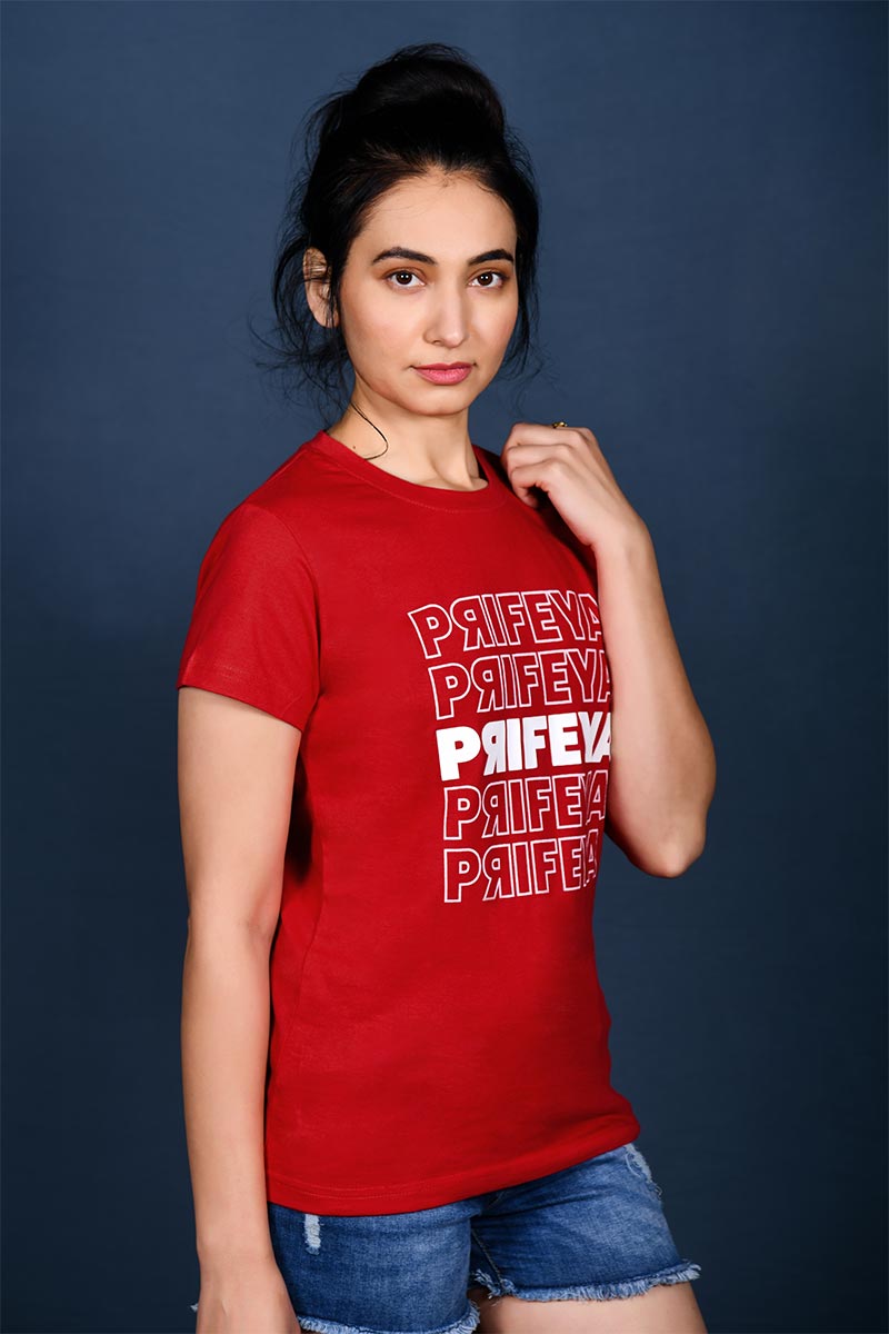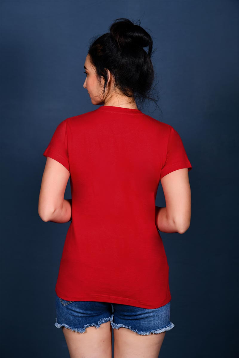 Be the first to review “Women Red Crew Neck Brand Print T-Shirt”